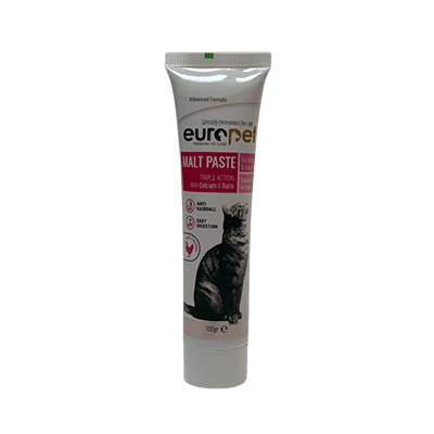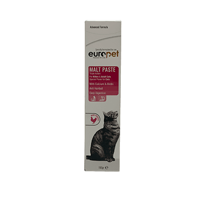 استفاده از مولتی ویتامین ها کمک شایانی به حفظ سلامت گربه ها می کند. استفاده از این مکمل ها موجب تامین تمامی مواد مغذی مورد نیازی که به اندازه کافی توسط غذاها تامین نمی شوند، خواهد شد.خمیر مالت یوروپت برای گربه های بالغ و بچه گربه ، حاوی کلسیم و بیوتین مورد نیاز است. این محصول به حفظ سلامت دندان و استخوان و سلامت پوست و مو کمک میکند. به صورت خمیری تولید شده و طعمی عالی دارد. این محصول حاوی پروتئین های مورد نیاز است. با استفاده از این خمیر مالت، گره های مویی به راحتی دفع و سیستم گوارش نیز تقویت میشود.