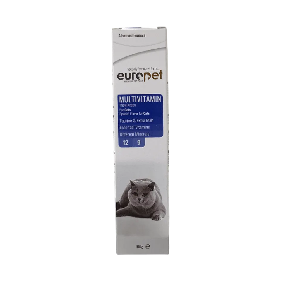 خمیر مولتی ویتامین یوروپت حاوی مجموعه ای کامل و بی نظیر از انواع ویتامین ها می باشد، که موجب رشد و تقویت سیستم دفاعی گربه شما می شود.مصرف این مکمل خوشمزه و مغذی در عین حال که به حفظ سلامت حیوان کمک می نماید مجموعه کاملی از مواد مغذی و انرژی زا را فراهم نموده، که به سادگی جذب بدن می شود.